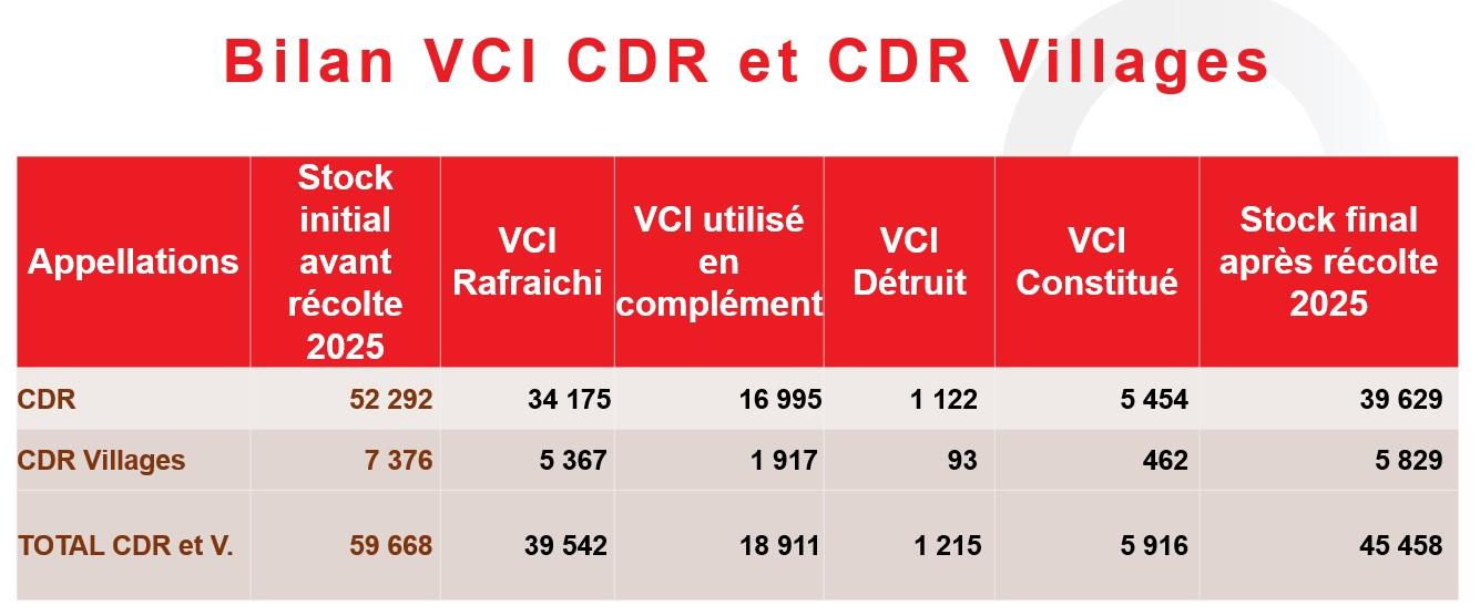 Le bilan des volumes de la récolte 2025 en Côtes du Rhône et Côtes du Rhône Villages a été actualisé au 22 janvier 2026 (source : DREV 2025).