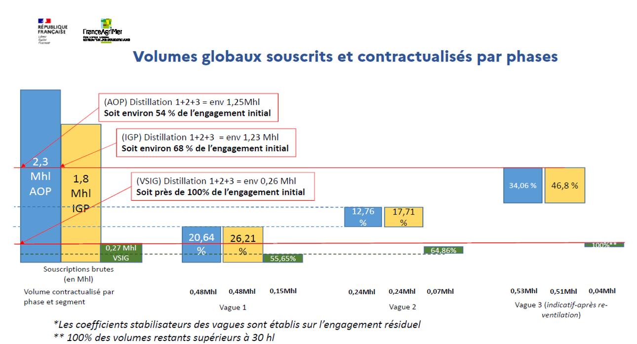 54 % des engagements initiaux peuvent être distillés, soit 1.25 millions d’hl