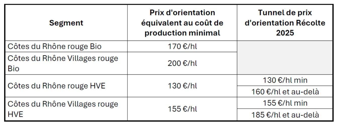 Les fourchettes de prix définies pour le HVE permettent d'intégrer la diversité des situations économiques avec une forte variabilité des coûts de production, particulièrement vraie pour les Côtes du Rhône HVE, et d'offrir plus de souplesse dans les négociations.